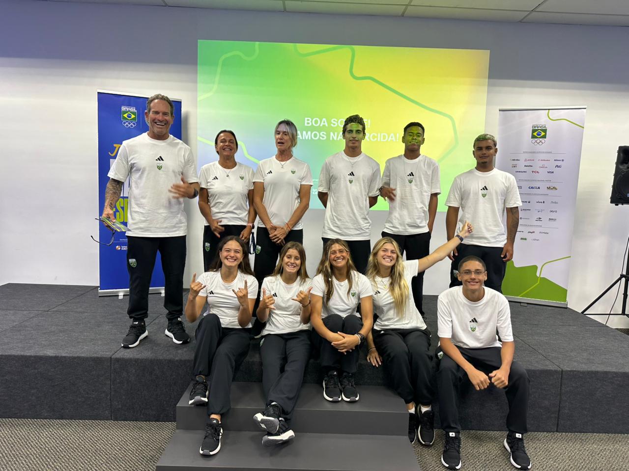 Pedrinho posou com a equipe brasileira de surf em São Paulo, quando se preparavam para viajar para o Panamá. O evento se inicia neste domingo.