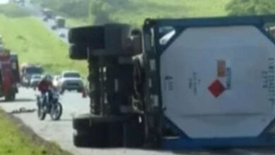 Trecho da BR-324 em Santo Amaro é interditado após caminhão que levava acetona tombar