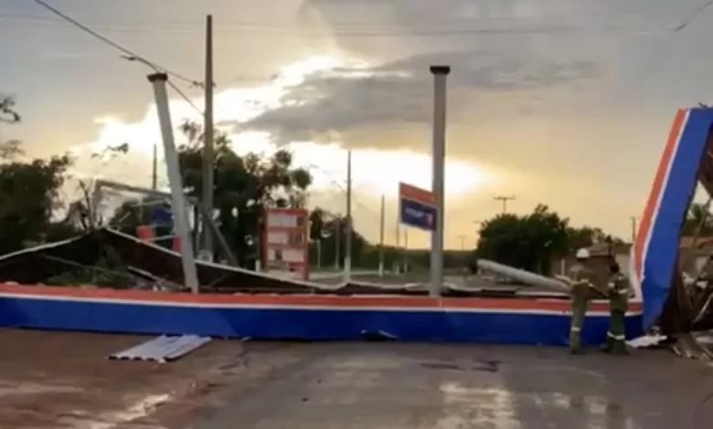 De acordo com relatos, a cobertura do posto foi arrancada pela força do vento, ficando totalmente destruída. Outdoors foram derrubados e houve queda de fios de alta tensão em diversos pontos da cidade, aumentando o risco para a população.