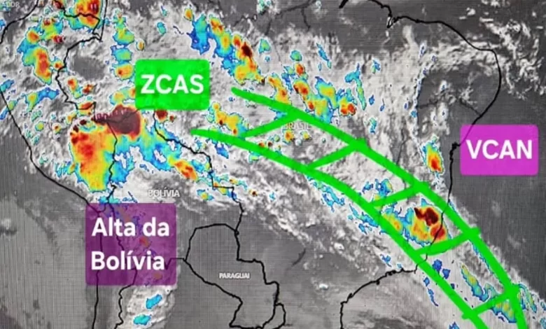 ZCAS segue atuando na Bahia, mas Vale do Jiquiriçá não deve ter grandes volumes de chuva nos próximos dias.