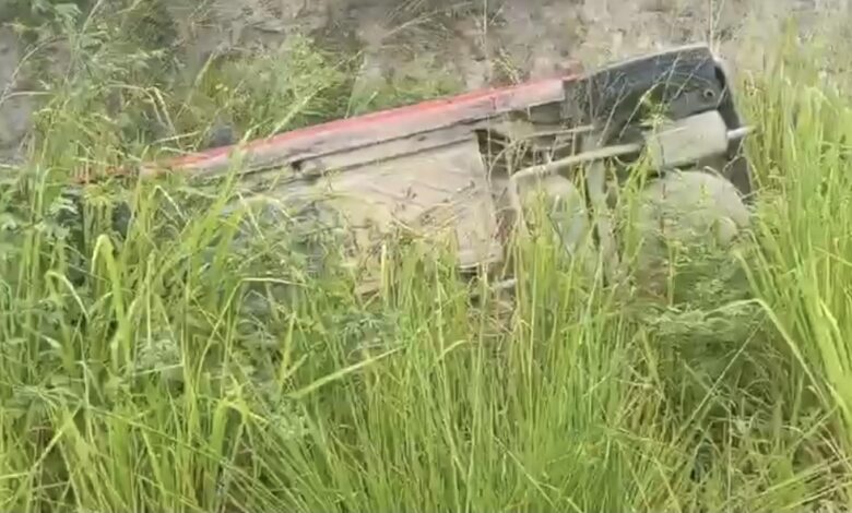 Um veículo saiu da pista e terminou capotando na tarde deste domingo (29), na Ba 120, no trecho de Elísio Medrado próximo ao Monte Cruzeiro.