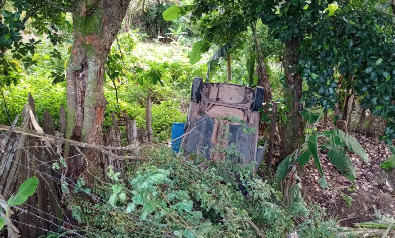 Veiculo sai da pista, capota e vai parar em quintal de residência na Ba 026 em Eisio Medrado