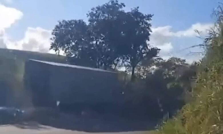 Vídeo mostra momento em que caminhão sem freios colide com barranco na BA 026 entre SAJ e Varzedo